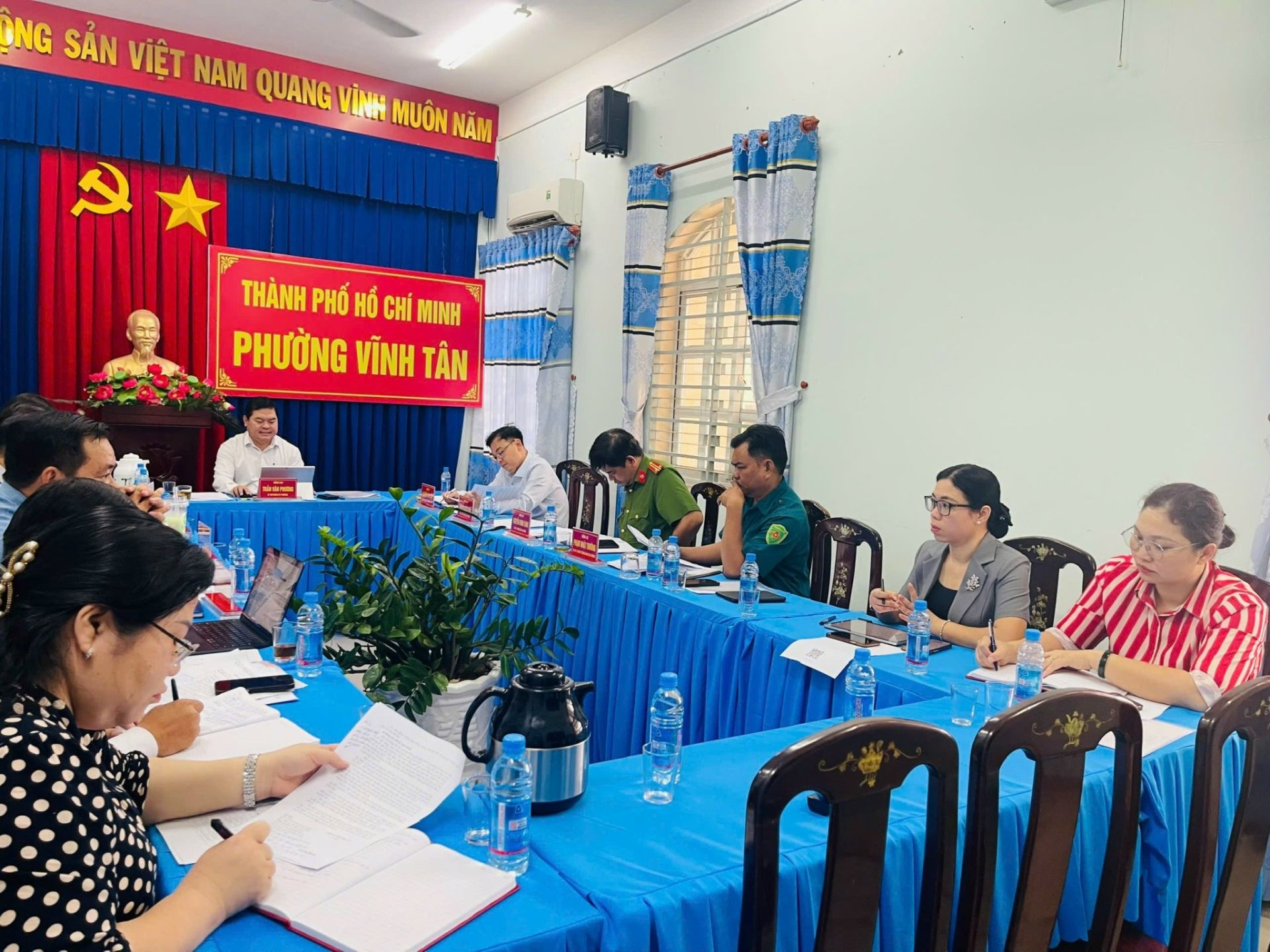 Ủy ban nhân dân phường chỉ đạo phòng, ban tham mưu hoàn thiện lấy ý kiến, hoàn chỉnh hồ sơ đề nghị đổi tên khu phố trình Hội đồng nhân dân phường thông qua. Chuẩn bị các điều kiện tốt nhất cho chương trình họp mặt kỷ niệm 78 năm ngày thương binh liệt sĩ (27/7/1947 – 27/7/2025). Thống nhất chương trình, nội dung tờ trình Hội đồng nhân dân phường tổ chức kỳ họp HĐND phường lần thứ II - khóa I, nhiệm kỳ 2025 – 2030. Văn phòng Đảng ủy hoàn thiện chương trình làm việc 06 tháng cuối năm của BCH, BTV và thường trực phường Vĩnh Tân; kế hoạch thực hiện Nghị quyết 57 NQ/TW về đột phá khoa học công nghệ, đổi mới sáng tạo và chuyển đổi số quốc gia; Quy chế trách nhiệm của Bí thư Đảng ủy trong việc tiếp dân, đối thoaị trực tiếp với dân và xử lý những phản ảnh, kiến nghị, tố cáo của công dân.