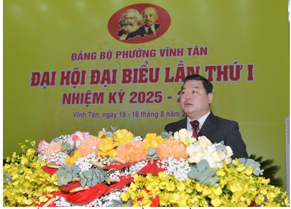 Đại hội đại biểu Đảng bộ phường Vĩnh Tân lần thứ I, nhiệm kỳ 2025 - 2030 diễn ra trong 2 ngày 15/8-16/8/2025. Đại hội có chủ đề: Xây dựng Đảng bộ và hệ thống chính trị trong sạch, vững mạnh; tập trung sức mạnh toàn dân; xây dựng phường Vĩnh Tân phát triển bền vững. Với phương châm “Đoàn kết - Dân chủ - Kỷ cương - Hành động - Phát triển”.
