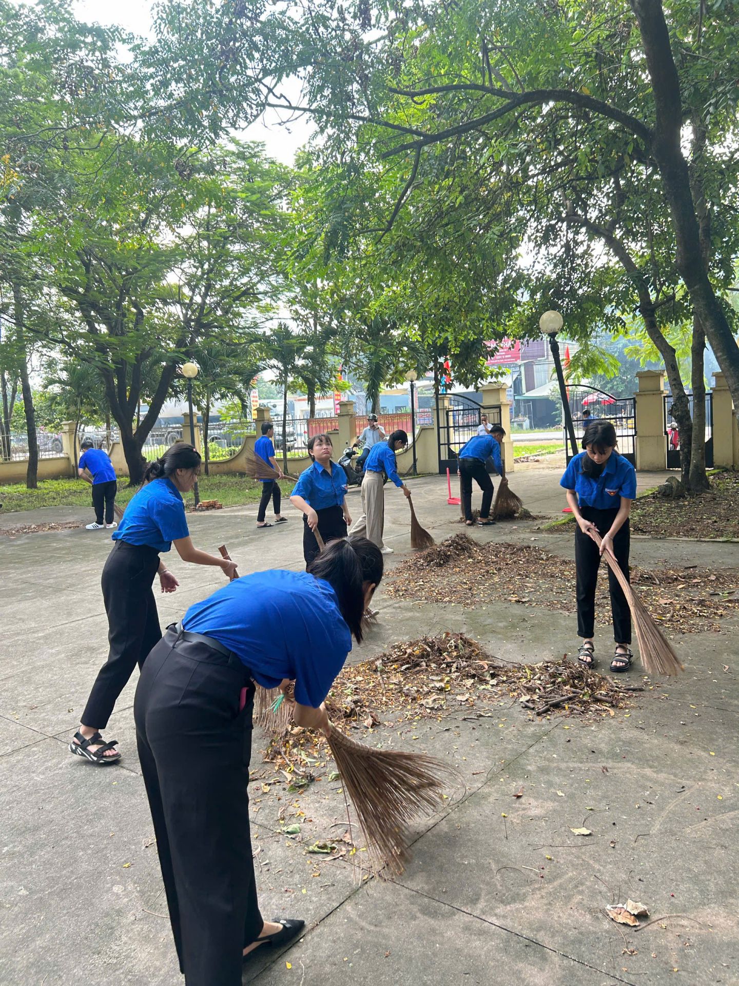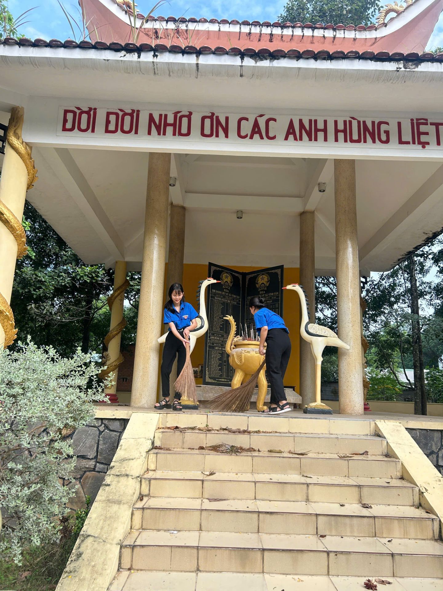 Đoàn viên, thanh niên dâng hương, quét dọn, thu gom rác xung quanh khuôn viên, vệ sinh bia ghi danh Liệt sĩ và Tượng đài chiến sĩ Du kích phường Vĩnh Tân.