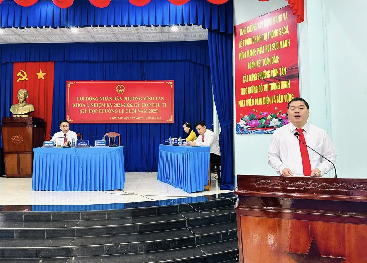 HĐND phường Vĩnh Tân tổ chức Kỳ họp thứ tư (Kỳ họp thường lệ cuối năm 2025), khóa I, nhiệm kỳ 2021 - 2026