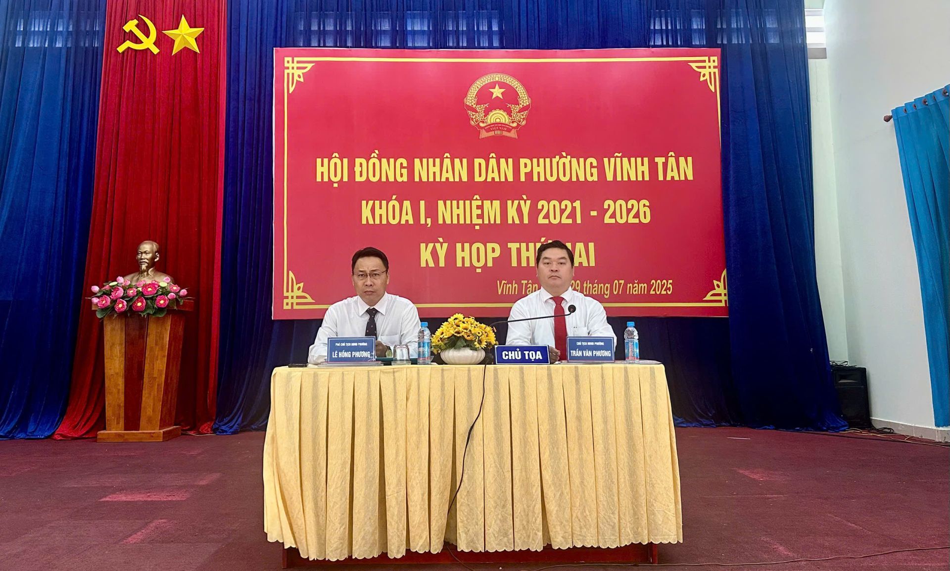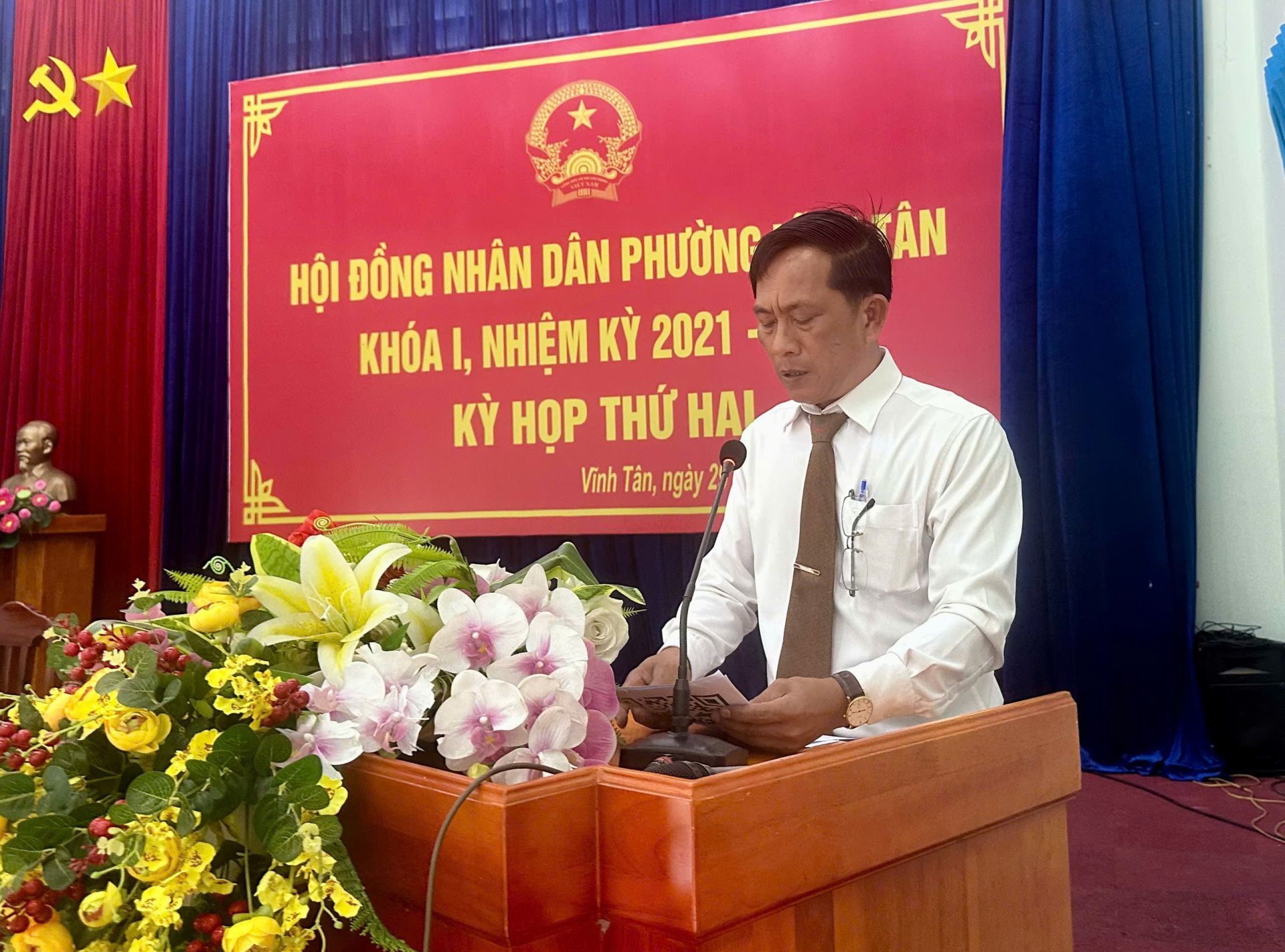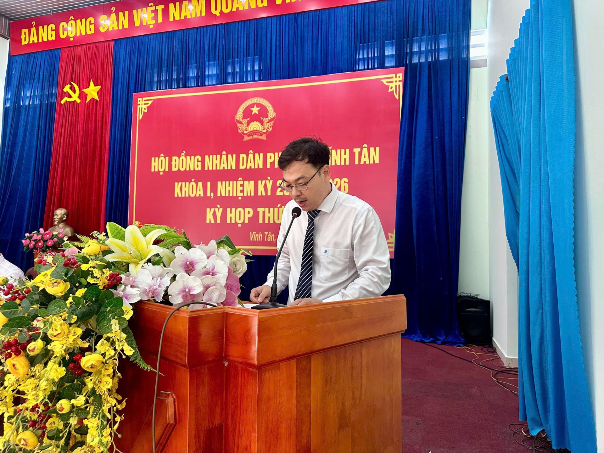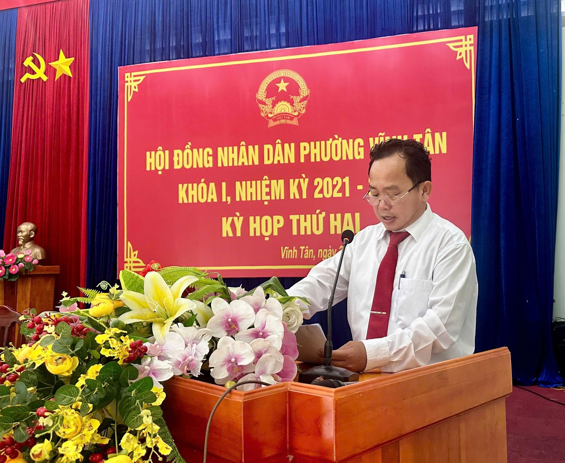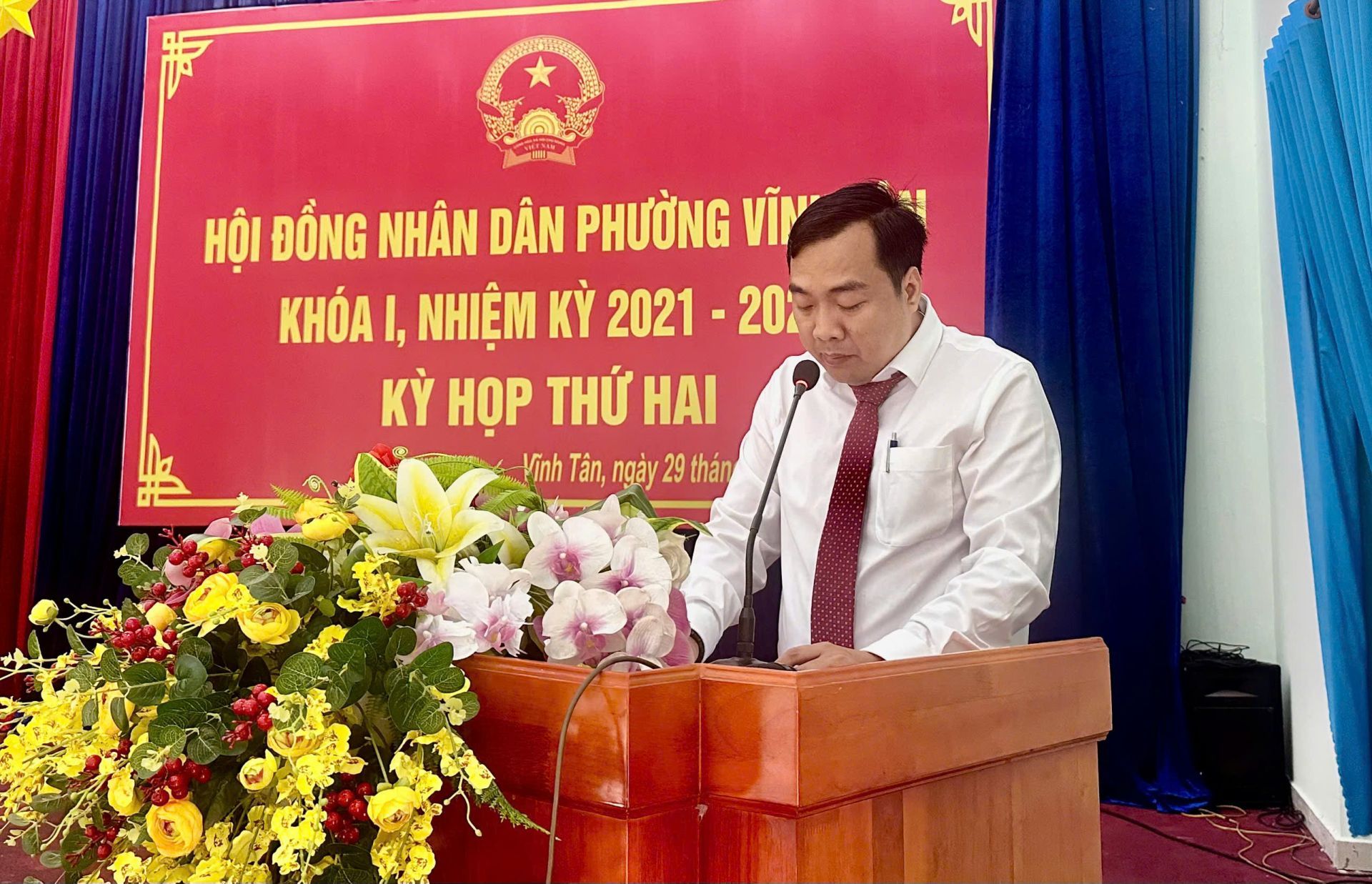 Dự kỳ họp có bà Nguyễn Thị Thảo Nguyên- Trưởng Ban Văn hóa – Xã hội HĐND Thành phố TPHCM; ông Trần Văn Phương – Bí thư Đảng ủy, Chủ tịch Hội đồng nhân dân phường Vĩnh Tân, chủ toạ kỳ họp; ông Nguyễn Tấn Lập - Phó Bí thư Đảng uỷ, Chủ tịch Uỷ ban nhân dân phường; bà Nguyễn Thị Hồng Sen - Uỷ viên Thường vụ, Chủ tịch Uỷ ban Mặt trận Tổ quốc Việt Nam phường. Cùng dự còn có các đồng chí Uỷ viên Ban Thường vụ Đảng uỷ phường, lãnh đạo các cơ quan, ngành, đoàn thể phường; lãnh đạo các trường học trên địa bàn; Bí thư chi bộ, Trưởng Ban Công tác Mặt trận, Trưởng khu phố trên địa bàn phường.