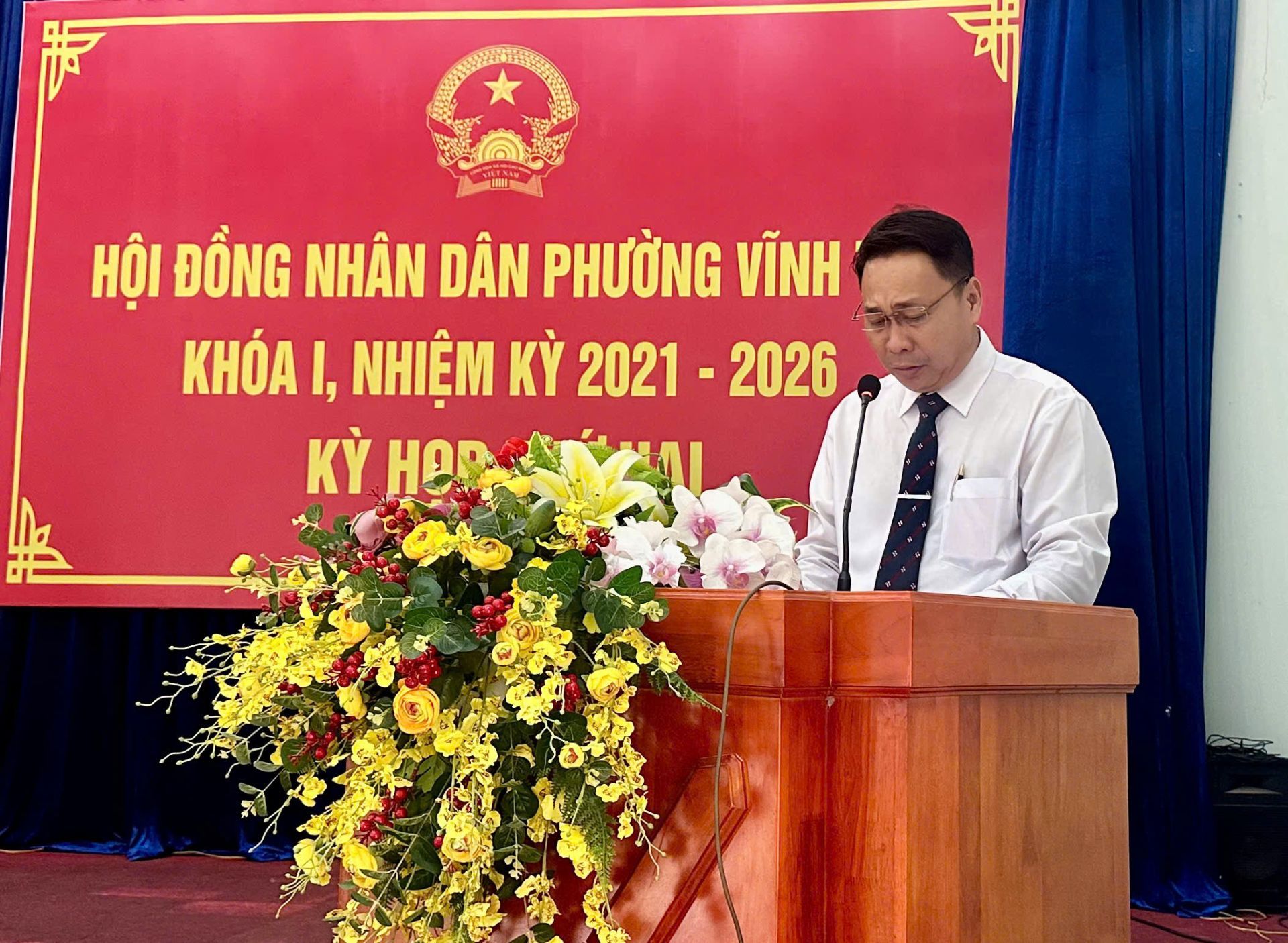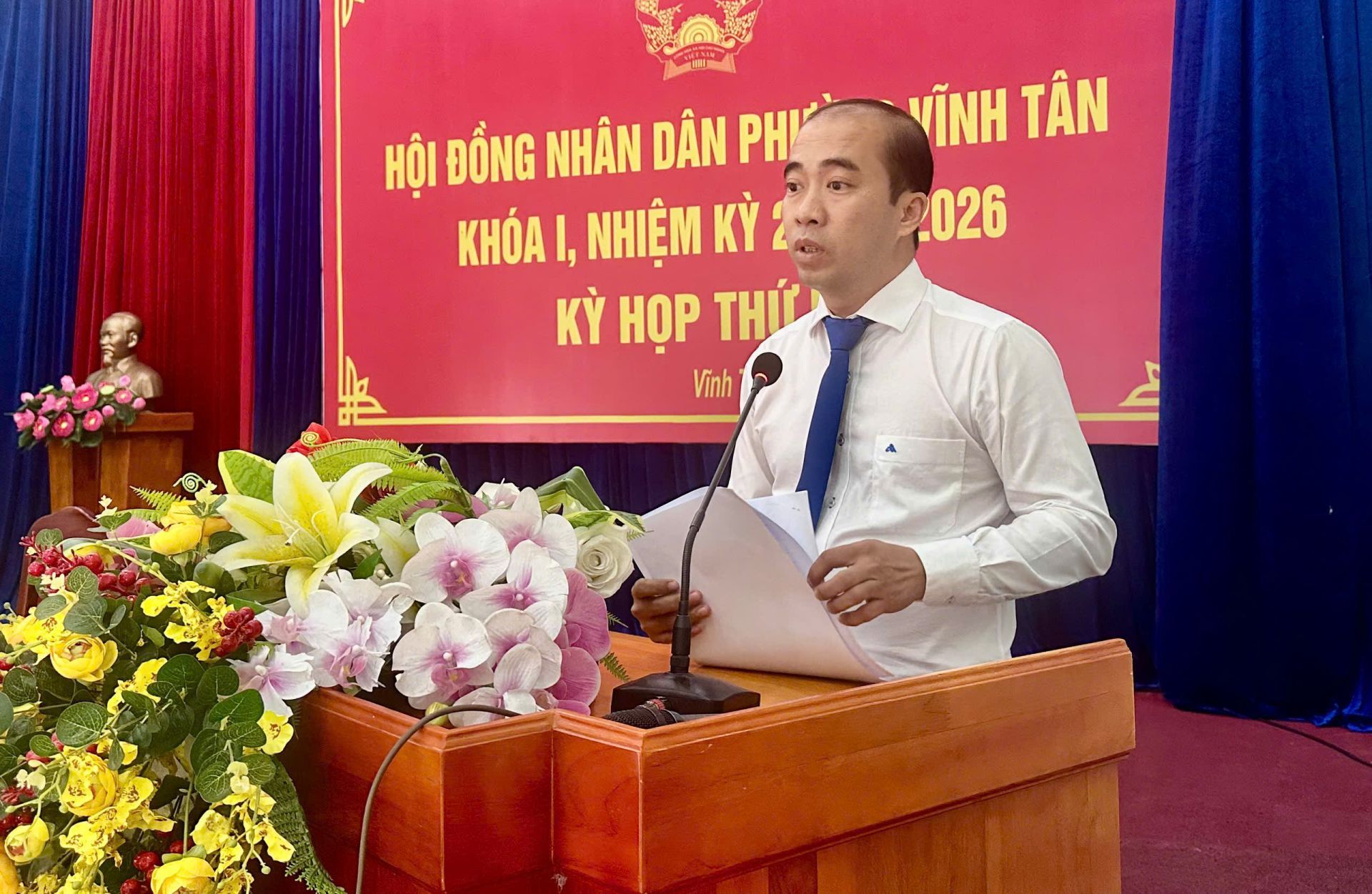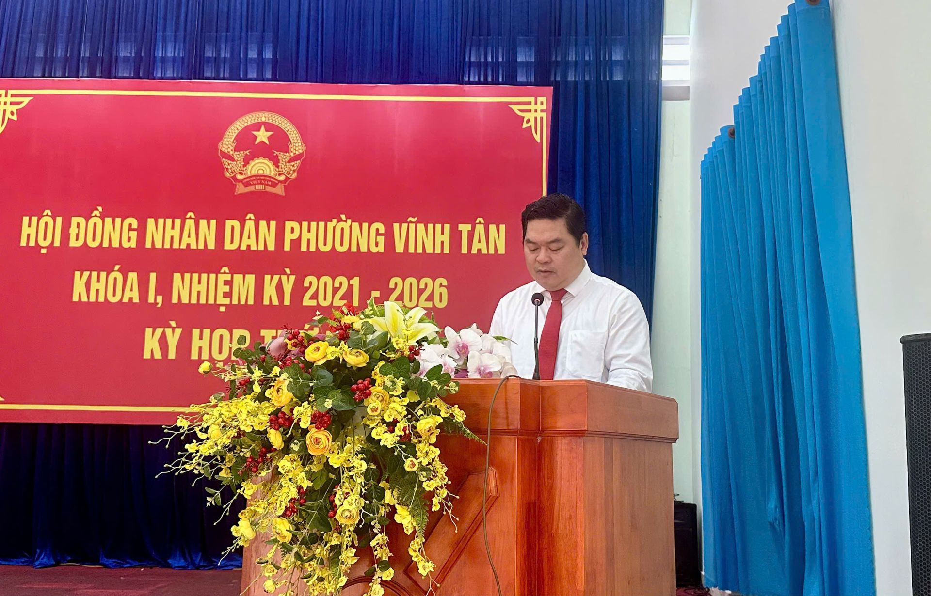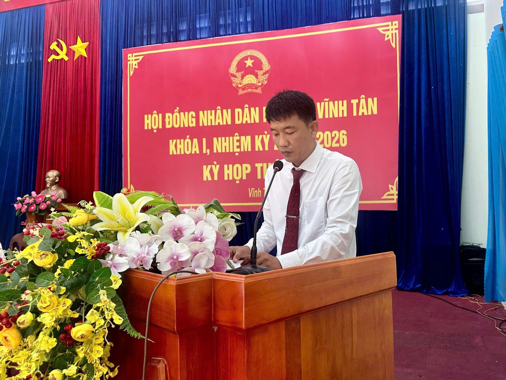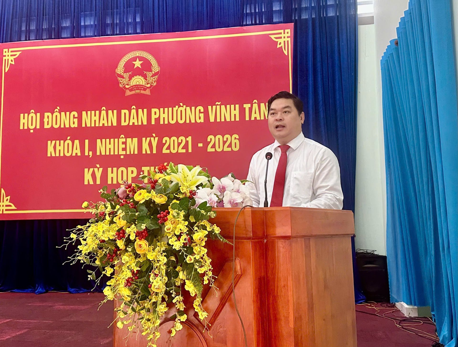 Dự kỳ họp có bà Nguyễn Thị Thảo Nguyên- Trưởng Ban Văn hóa – Xã hội HĐND Thành phố TPHCM; ông Trần Văn Phương – Bí thư Đảng ủy, Chủ tịch Hội đồng nhân dân phường Vĩnh Tân, chủ toạ kỳ họp; ông Nguyễn Tấn Lập - Phó Bí thư Đảng uỷ, Chủ tịch Uỷ ban nhân dân phường; bà Nguyễn Thị Hồng Sen - Uỷ viên Thường vụ, Chủ tịch Uỷ ban Mặt trận Tổ quốc Việt Nam phường. Cùng dự còn có các đồng chí Uỷ viên Ban Thường vụ Đảng uỷ phường, lãnh đạo các cơ quan, ngành, đoàn thể phường; lãnh đạo các trường học trên địa bàn; Bí thư chi bộ, Trưởng Ban Công tác Mặt trận, Trưởng khu phố trên địa bàn phường.