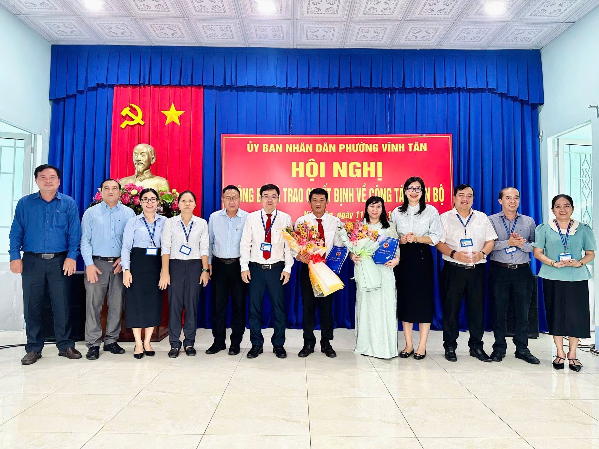 Hội nghị đã công bố Quyết định của Chủ tịch UBND phường Vĩnh Tân về việc điều động ông Lê Văn Năm, Phó Trưởng Ban Văn hóa – Xã hội của Hội đồng nhân dân phường Vĩnh Tân đến nhận nhiệm vụ tại Phòng Văn hóa – Xã hội phường và bổ nhiệm giữ chức vụ Trưởng phòng Văn hóa – Xã hội phường Vĩnh Tân. Thời hạn bổ nhiệm là 05 năm; Bổ nhiệm bà Đặng Hồng Thảo, chuyên viên phòng Kinh tế, Hạ tầng và Đô thị phường Vĩnh Tân, giữ chức vụ Phó Trưởng phòng Kinh tế, Hạ tầng và Đô thị phường Vĩnh Tân. Thời hạn bổ nhiệm là 05 năm.