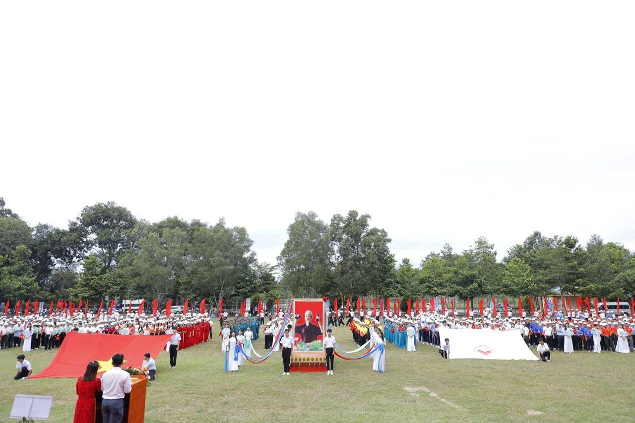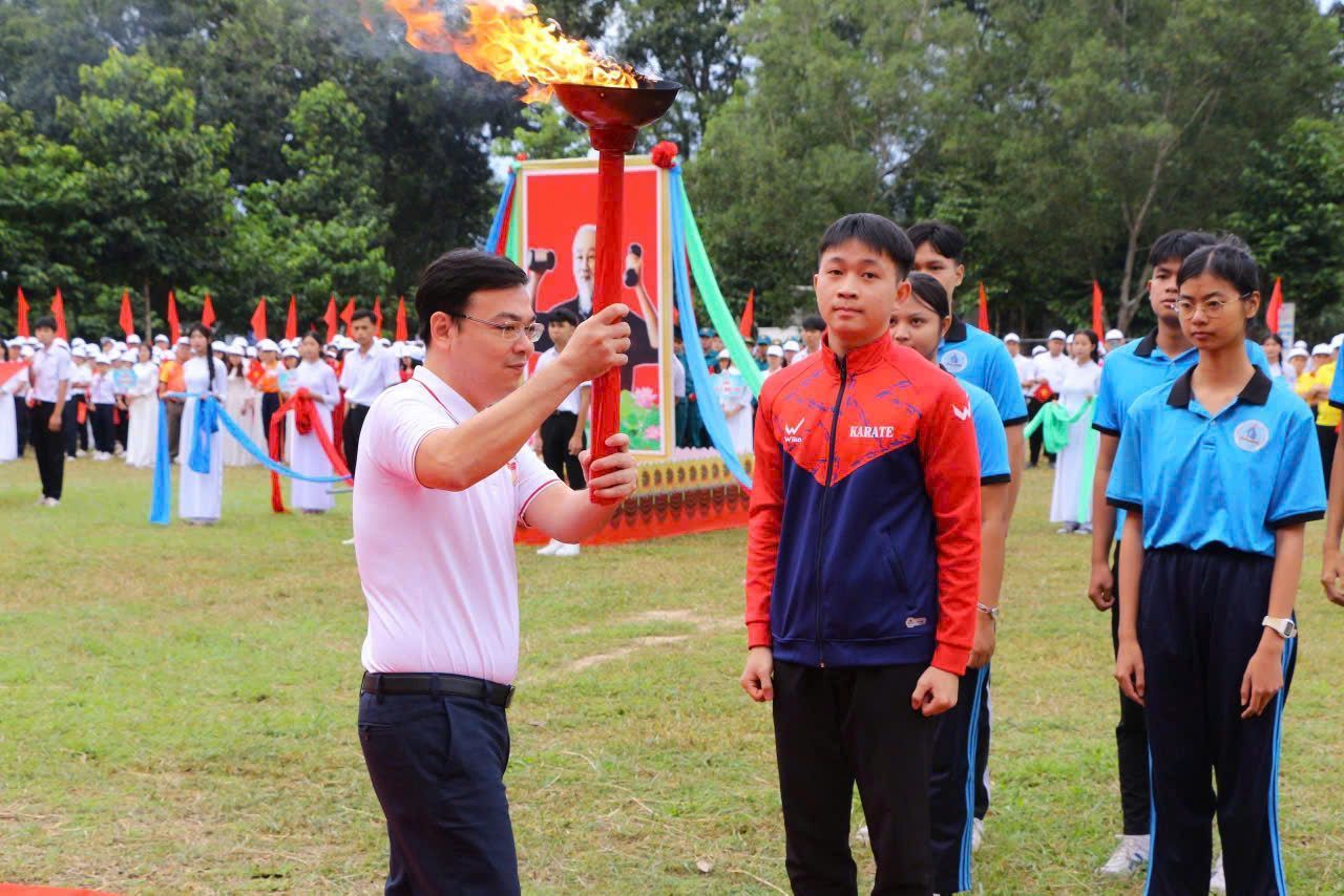 Ông Nguyễn Tấn Lập - Phó Bí thư Đảng ủy - Chủ tịch Ủy ban nhân dân - Trưởng Ban Chỉ đạo Đại hội thắp sáng ngọn lửa truyền thống