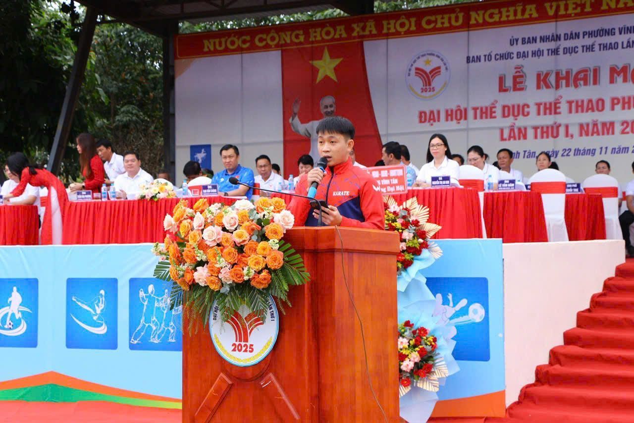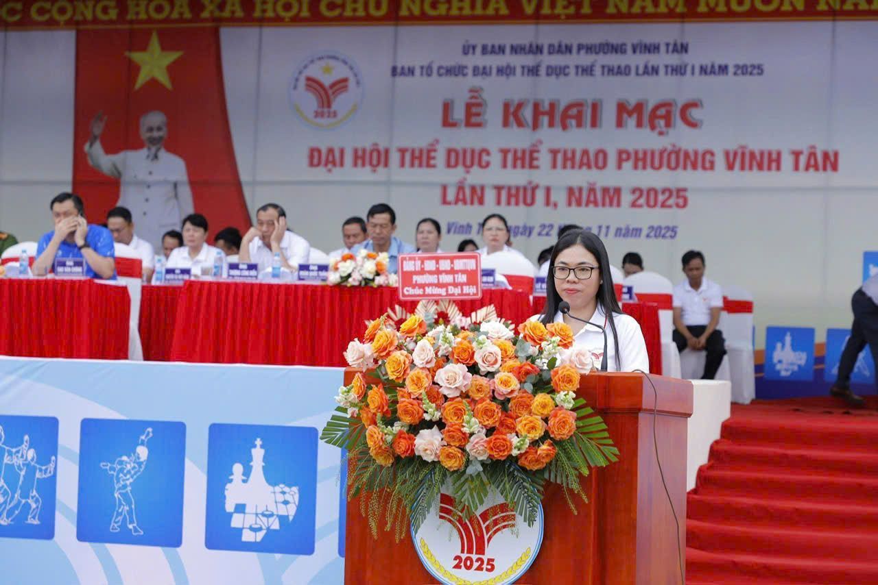 Sáng ngày 22/11/2025, tại sân vận động Trung tâm Văn hóa Thể thao - Học tập cộng đồng phường, Ủy ban nhân dân phường Vĩnh Tân đã tổ chức Lễ khai mạc Đại hội Thể dục Thể thao phường lần thứ I năm 2025. Đây là sự kiện có ý nghĩa chính trị - văn hóa - xã hội sâu sắc, khẳng định tinh thần "Khỏe để xây dựng và bảo vệ Tổ quốc", đồng thời lan tỏa phong trào "Toàn dân rèn luyện thân thể theo gương Bác Hồ vĩ đại" trong cán bộ, đảng viên và các tầng lớp Nhân dân trên địa bàn.