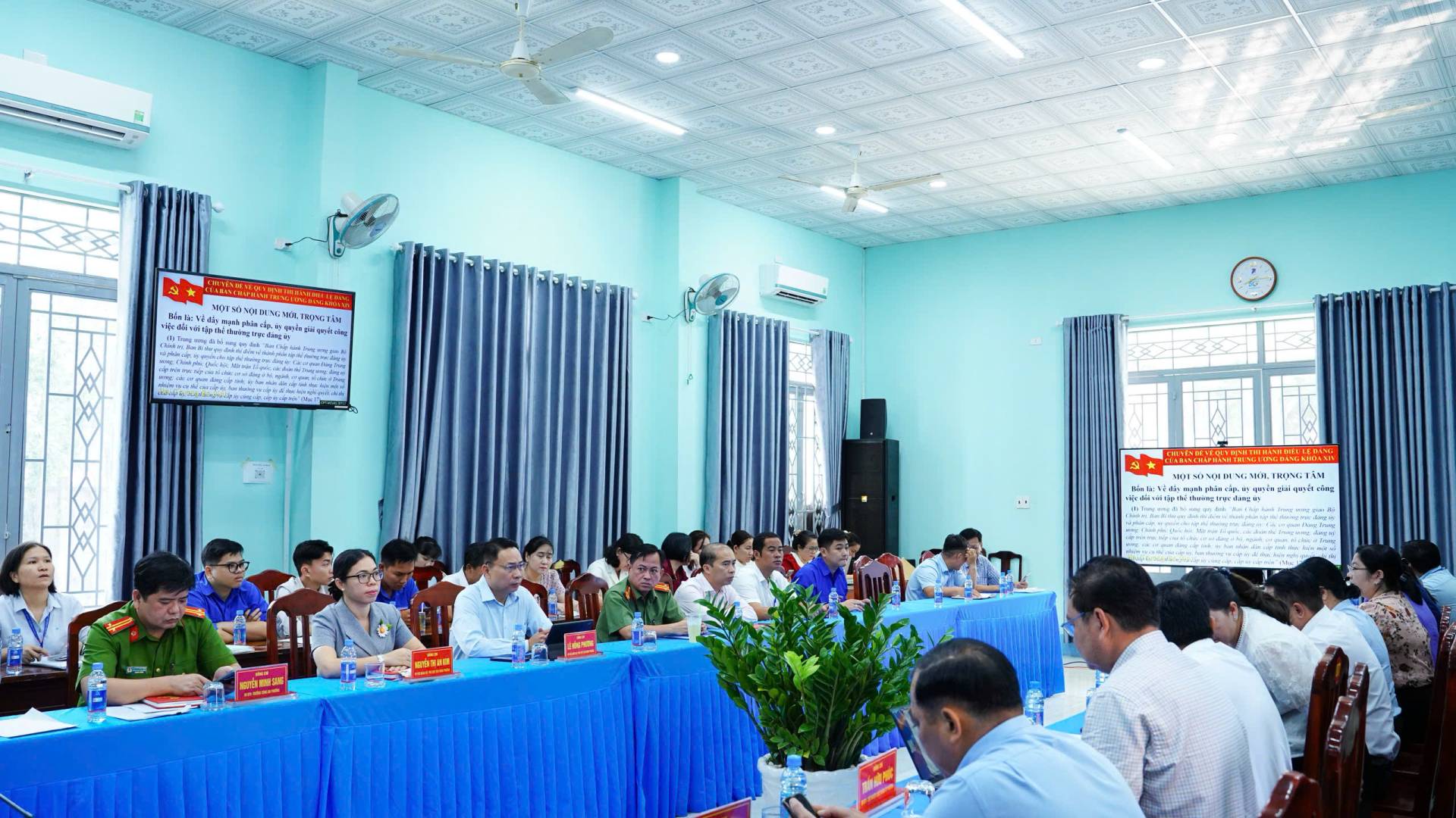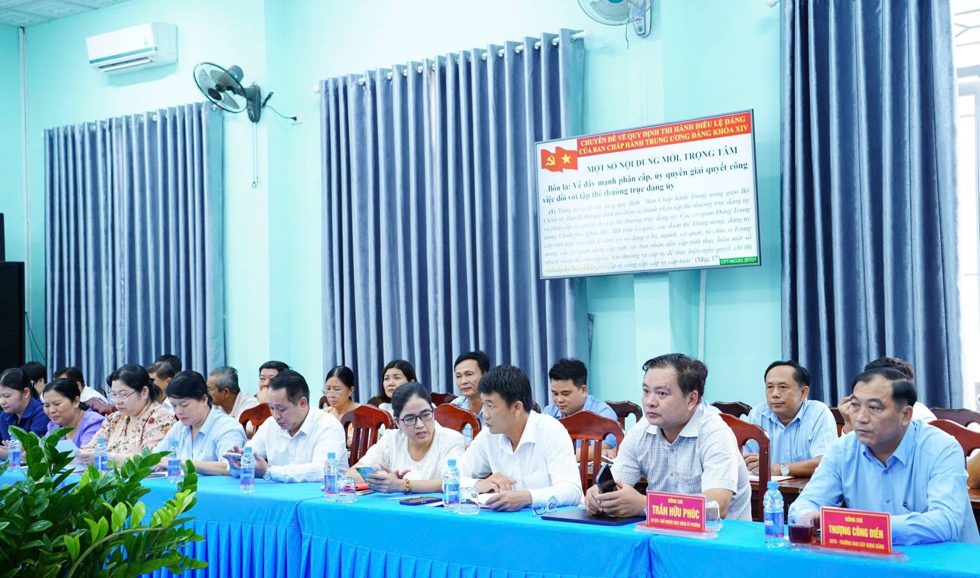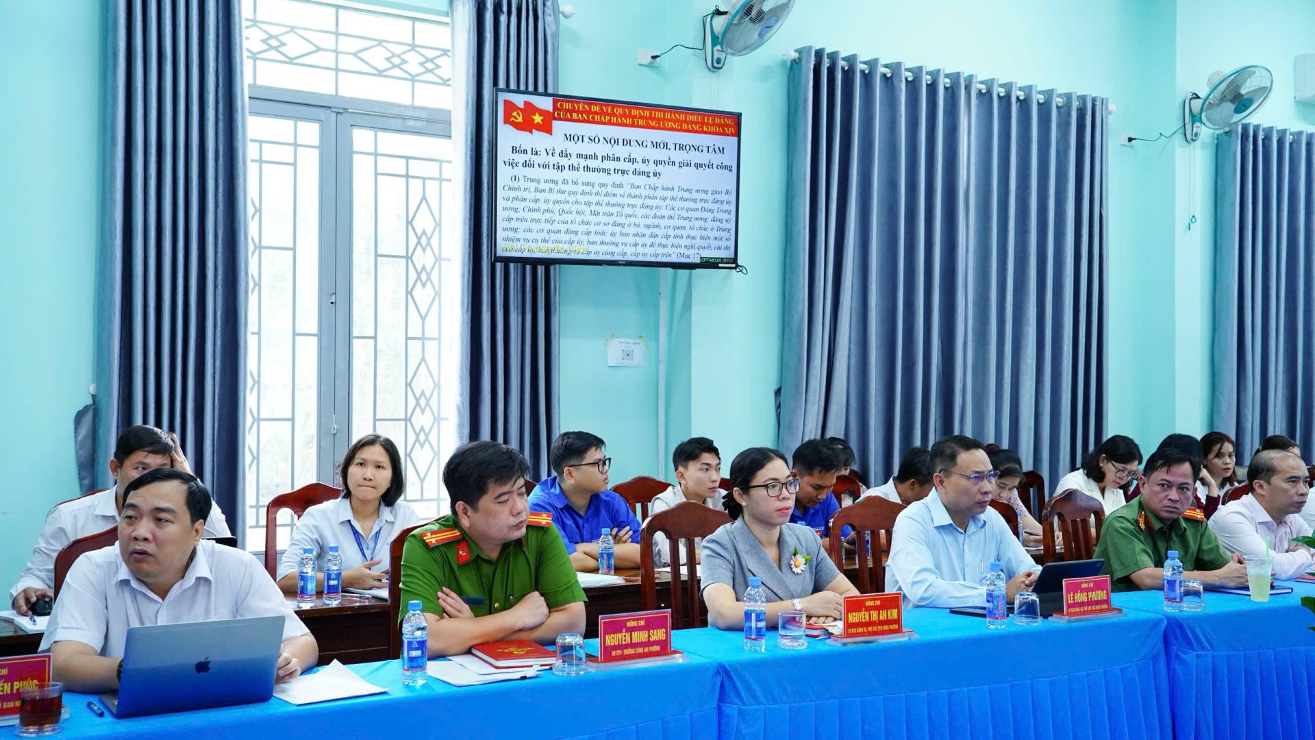 Tại hội nghị, các đại biểu được nghe quán triệt 5 chuyên đề quan trọng, gồm: Quy định thi hành Điều lệ Đảng; Nghị quyết về đổi mới, nâng cao hiệu lực, hiệu quả công tác kiểm tra, giám sát và kỷ luật của Đảng; Quy định về công tác kiểm tra, giám sát và kỷ luật trong Đảng; những nội dung cơ bản của Quy định về công tác chính trị, tư tưởng trong Đảng; Nghị quyết về tiếp tục tăng cường sự lãnh đạo của Đảng đối với công tác phòng, chống tham nhũng, lãng phí, tiêu cực trong giai đoạn mới.