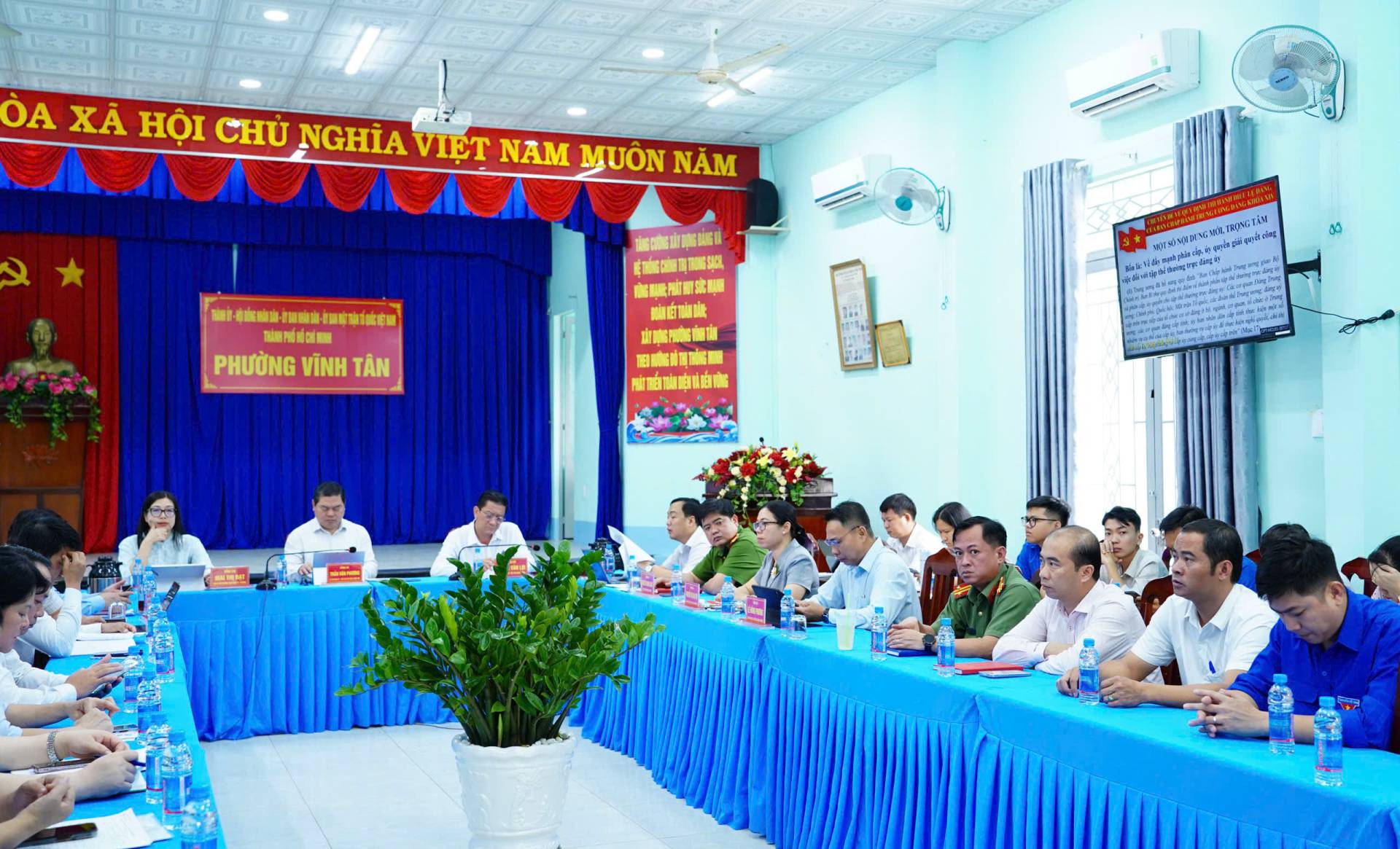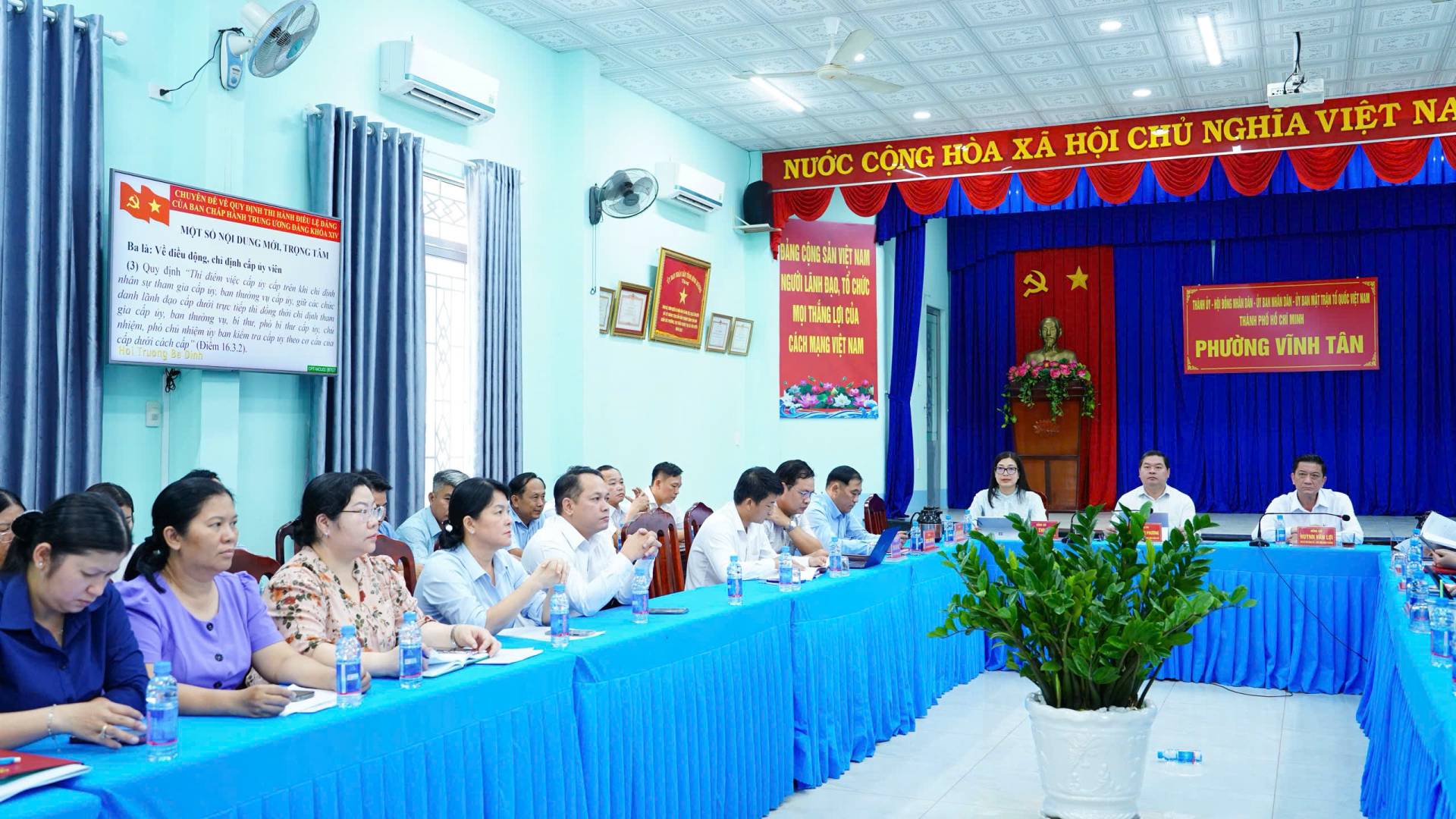 Tại điểm cầu phường Vĩnh Tân, tham dự hội nghị có lãnh đạo Đảng ủy, HĐND, UBND, Ủy ban MTTQ Việt Nam phường; các đồng chí Ủy viên Ban Chấp hành Đảng bộ phường; cùng trưởng, phó các ban, ngành, đoàn thể, cơ quan, đơn vị sự nghiệp trực thuộc.