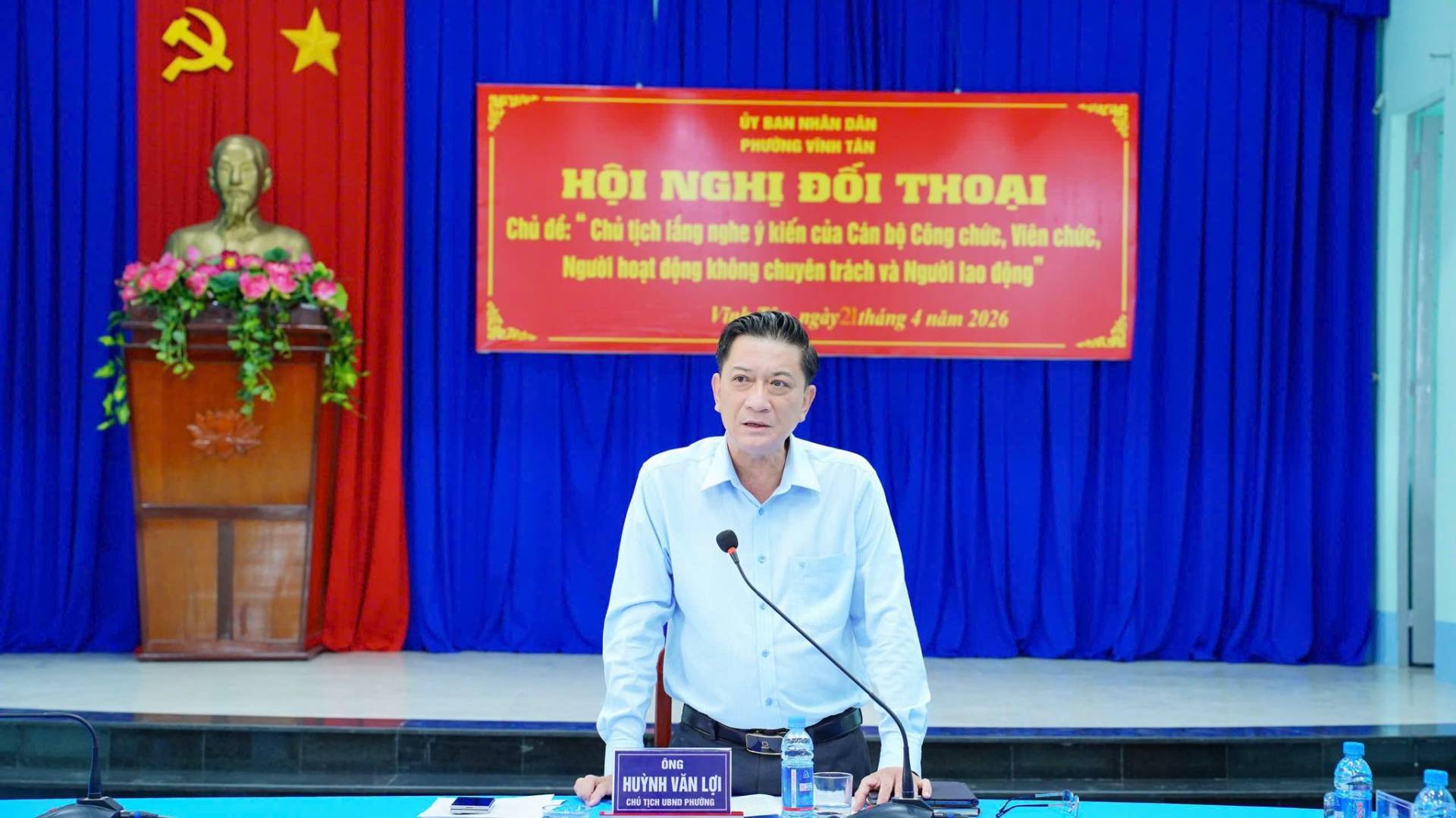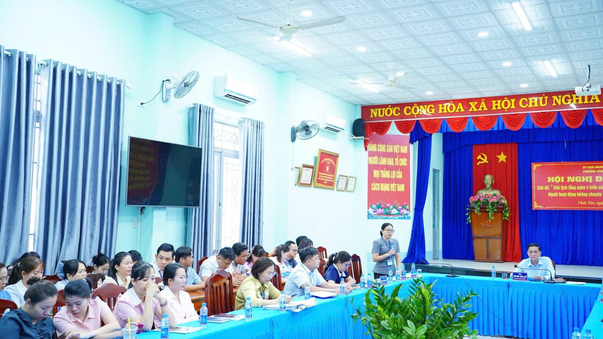 PHƯỜNG VĨNH TÂN TỔ CHỨC HỘI NGHỊ ĐỐI THOẠI "CHỦ TỊCH LẮNG NGHE Ý KIẾN CỦA CÁN BỘ, CÔNG CHỨC, VIÊN CHỨC, NGƯỜI HOẠT ĐỘNG KHÔNG CHUYÊN TRÁCH VÀ NGƯỜI LAO ĐỘNG"