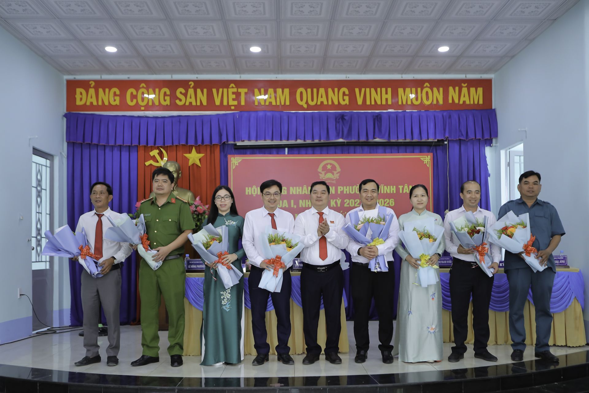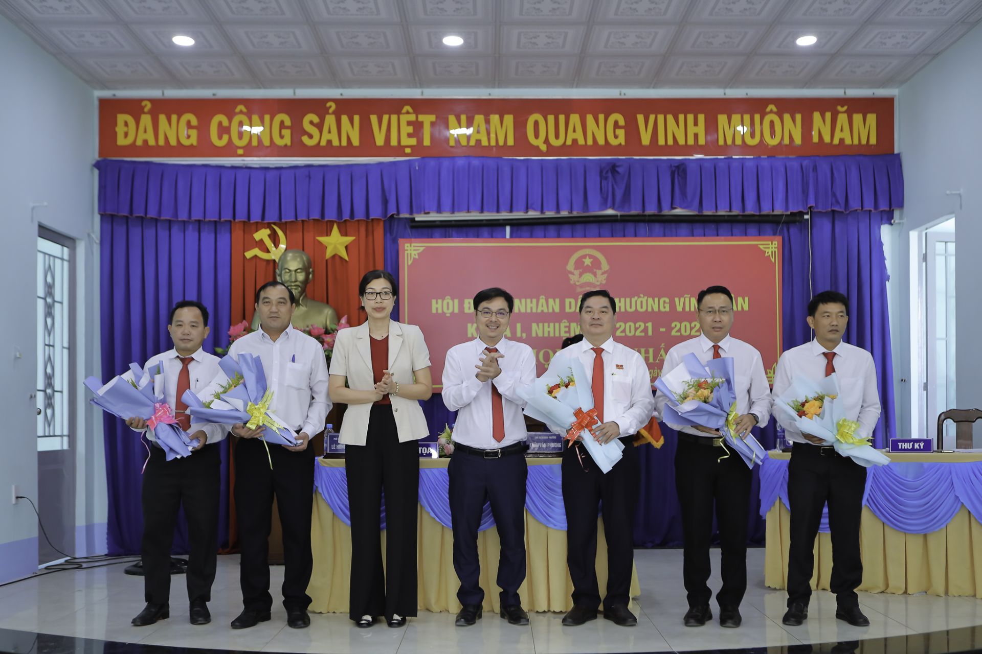 Trong đó, đồng chí Trần Văn Phương – Bí thư Đảng uỷ giữ chức Chủ tịch HĐND phường; Đồng chí Lê Hồng Phương – Đảng Uỷ viên giữ chức Phó Chủ tịch HĐND phường Vĩnh Tân nhiệm kỳ 2021 – 2026; Đồng chí Thượng Công Điền - Uỷ viên BTV Đảng uỷ giữ chức Trưởng Ban Kinh tế - Ngân sách; Đồng chí Trần Hữu Phúc - Uỷ viên BTV Đảng uỷ giữ chức Trưởng Ban Văn hoá - Xã hội.