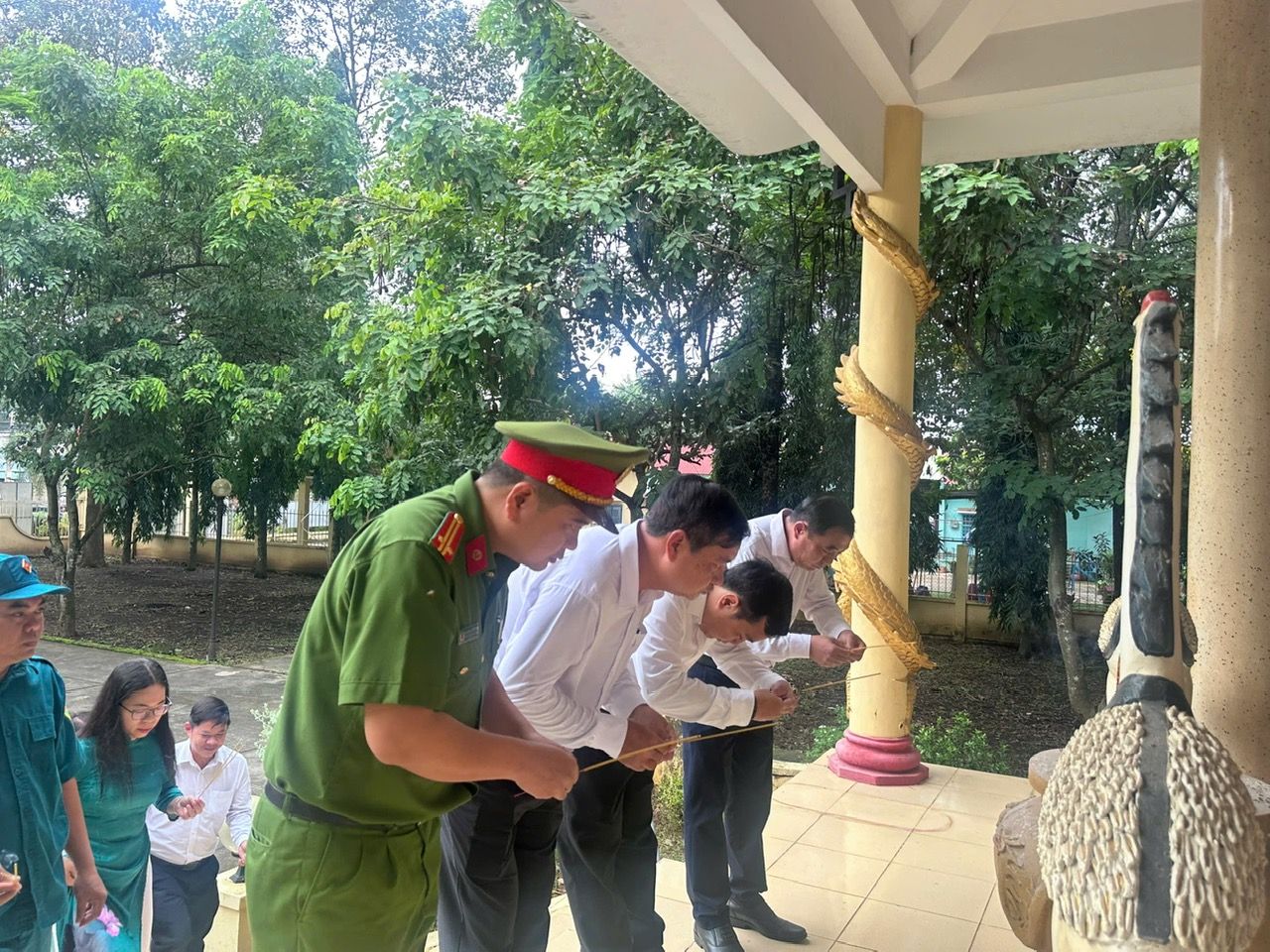 Dự lễ viếng có đồng chí Mai Thị Đạt – Phó Bí thư Thường trực Đảng uỷ phường; đồng chí Nguyễn Tấn Lập – Phó Bí thư, Chủ tịch UBND phường, cùng dự có các đồng chí trong Ban Thường vụ, Ban chấp hành đảng bộ phường; lãnh đạo, cán bộ, công chức, viên chức phường, các khu phố; cán bộ, chiến sĩ lực lượng vũ trang, gia đình thân nhân liệt sĩ.