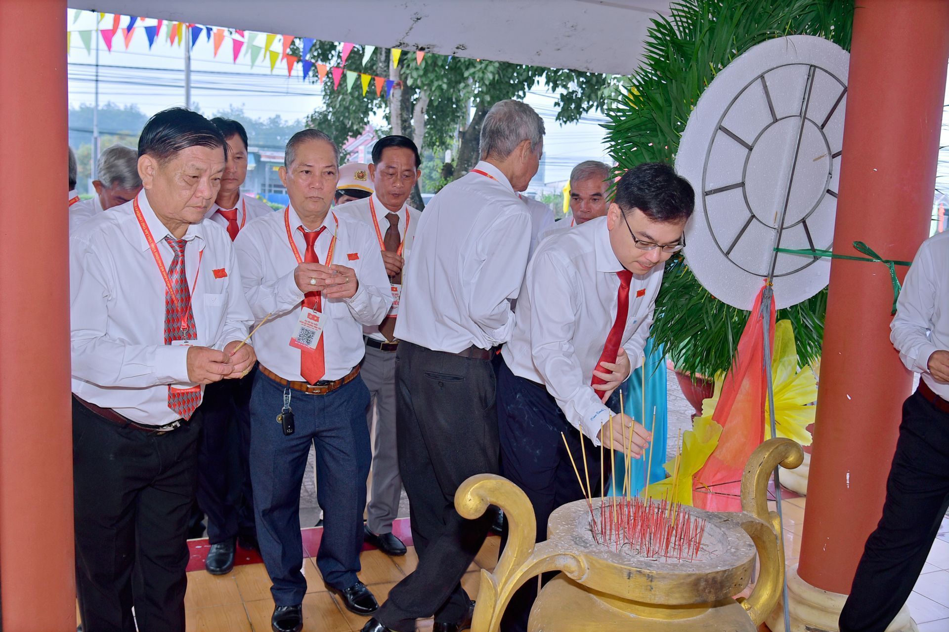 Tham dự buổi lễ có đồng chí Mai Văn Dũng - Nguyên Tỉnh ủy viên, nguyên Viện trưởng Viện kiểm sát tỉnh Bình Dương, đồng chí Trần Văn Phương – Bí thư Đảng ủy, Chủ tịch HĐND phường cùng các đồng chí trong Ban Chấp hành Đảng bộ, các đồng chí trong Thường trực HĐND, Lãnh đạo UBND, Ủy ban MTTQ Việt Nam phường, cùng các đồng chí đại biểu chính thức của Đại hội. Đoàn đã thành kính dâng hoa, dâng hương, dành phút mặc niệm tưởng nhớ công ơn các anh hùng liệt sỹ – những người con ưu tú của quê hương đã hiến dâng trọn đời mình cho sự nghiệp đấu tranh giải phóng dân tộc, bảo vệ Tổ quốc và gìn giữ cuộc sống bình yên hôm nay.