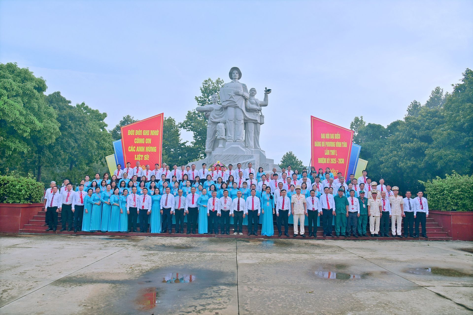 Sáng ngày 16/8/2025, trong không khí trang nghiêm và đầy xúc động, Đoàn đại biểu dự Đại hội đại biểu Đảng bộ phường Vĩnh Tân lần thứ nhất, nhiệm kỳ 2025-2030 đã tổ chức lễ dâng hoa, dâng hương, viếng Tượng đài chiến thắng Bông Trang – Nhà đỏ và Bia ghi danh liệt sĩ phường.